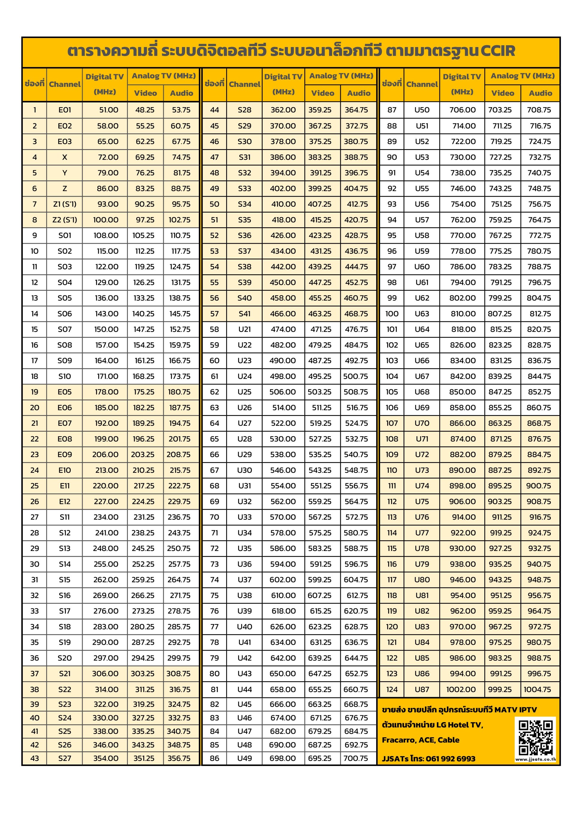 ตารางความถี่ ระบบดิจิตอลทีวี ระบบอนาล็อกทีวี ตามมาตรฐาน CCIR