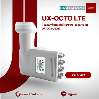 The Fracarro UX-OCTO LTE is an Octo LNB (8-output satellite signal receiver) with a built-in LTE interference filter. It features 8 independent outputs, making it ideal for multi-receiver satellite TV systems.