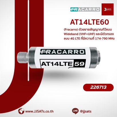 Fracarro AT14LTE60 (226713) F Connector Indoor and outdoor TV wideband (VHF+UHF) line amplifier with 14dB gain and 4G LTE integrated filter with 790MHz (E60) cut-off frequency.