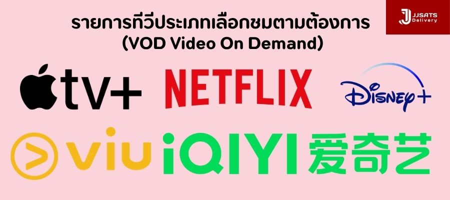 Video On Demand (VOD) allows viewers to select and watch content whenever they want, without waiting for broadcast times. This includes movies, series, and various entertainment programs available on platforms like Netflix, Disney+, HBO GO, iQIYI, Viu, Apple TV+, YouTube Premium, TrueID, AIS Play, etc.